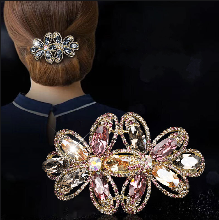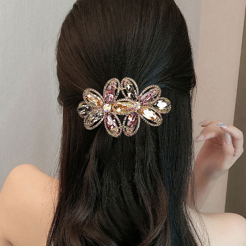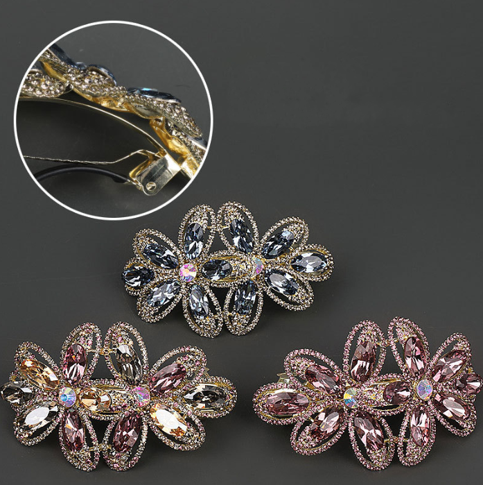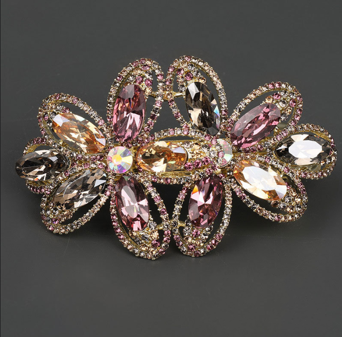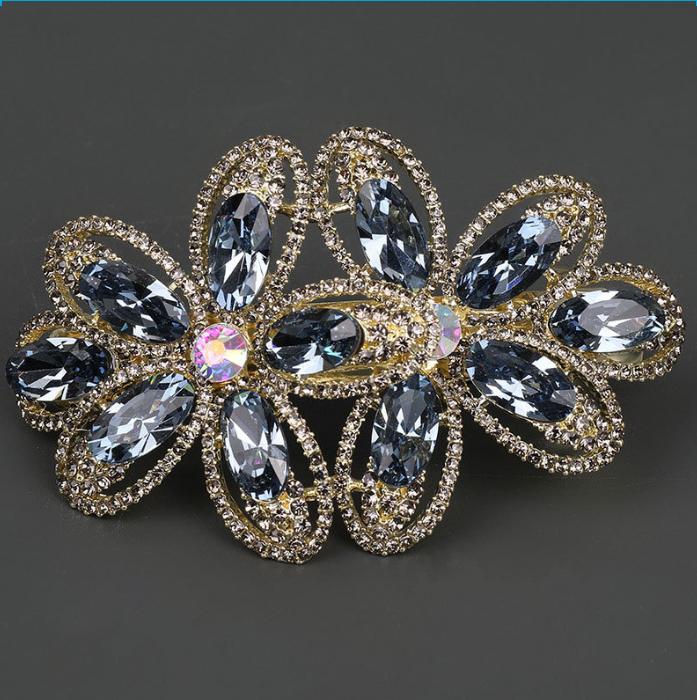 Luxury Floral Hair Clip – Large Gold Spring Clip for Half Updo, Bridal & Formal Occasions