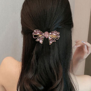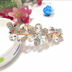 Half-Up Hair Clip – Spring-Loaded Clip with Exquisite Gold-Plated Czech Rhinestones & Metal Bow